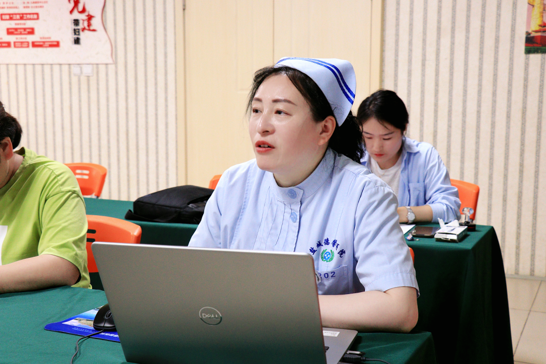 护理部戚主任与院感科田主任先后进行专业分享。戚主任围绕护理部实习要求展开细致讲解,从临床实践操作规范、护理文书书写标准,到团队协作、医患沟通技巧,全方位为实习生明晰实习方向与重点;院感科田主任则立足医院感染防控,深入剖析医疗环境安全准则、器械消毒规范及职业防护要点,强调院感防控在医疗工作中的重要性。她们