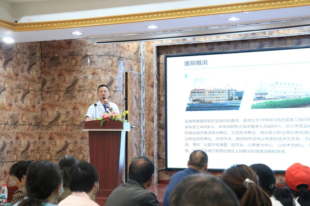 盐城德馨医院前称盐城协和医院,是成立于1998年3月的国家二级综合医院,医疗和康复用房16600㎡,病床230余张员工400余人,中高级职称占临床医务人员超65%,近六年在盐城市医院协会综合考核中五次获得第一名。医院是盐城市医保定点单位、工伤定点单位、退役军人职业病诊断和随诊服务指定医院,具备职业健康检查与职业病诊断双资质单位。20多年来,我院始终坚持以专家和技术为主导,不断创新医疗技术、提高服务水平、改善医疗环境,贯彻“让医疗充满爱”的宗旨,以患者为中心,以技术为核心,努力为患者提供全过程、全方位的优质医疗服务,赢得了盐城乃至周边地区人民群众的高度信赖和赞誉。
